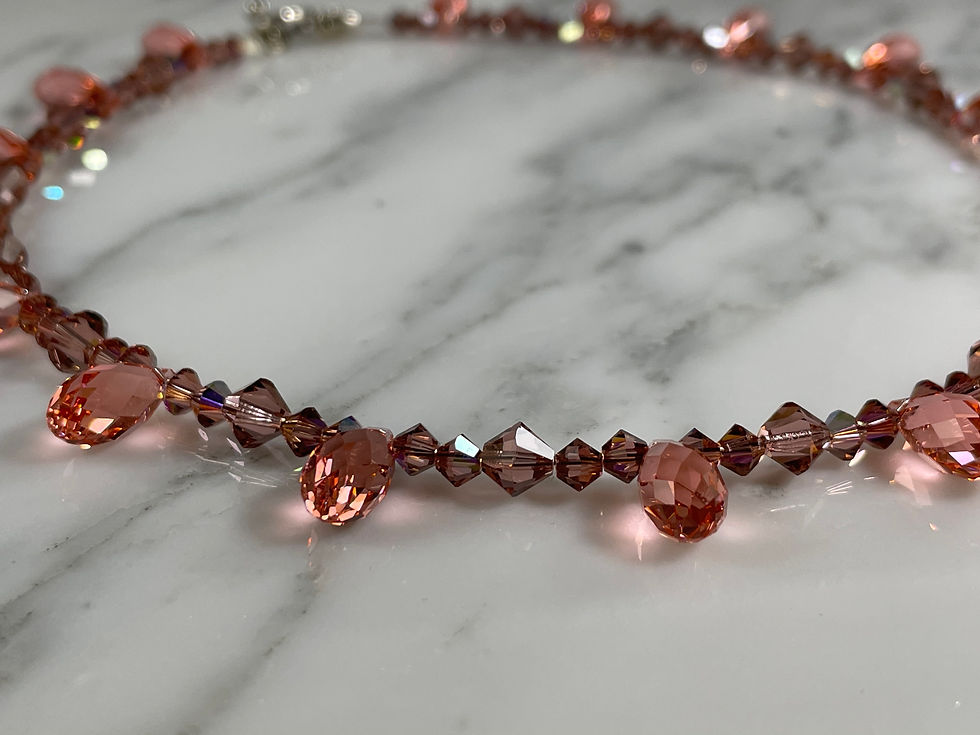 Swarovski Antique Pink And Rose Peach Briolette Necklace